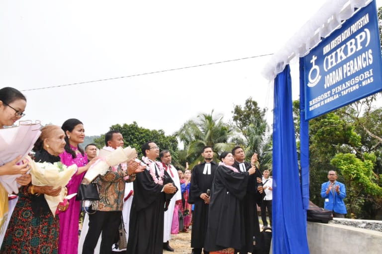 Acara peresmian ditandai dengan pembukaan selubung plank nama Gereja, dilanjutkan penandatanganan Prasasti oleh Praeses dan Pendeta Resort HKBP Pinangsori Pdt. Henni Frandy Panjaitan, S.Th.
