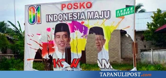 TAPTENG, TAPANULIPOST.com – Sejumlah baliho Calon Presiden nomor urut 01, Jokowi-Ma’ruf Amin di Kabupaten Tapanuli Tengah, dirusak oleh orang tak dikenal.