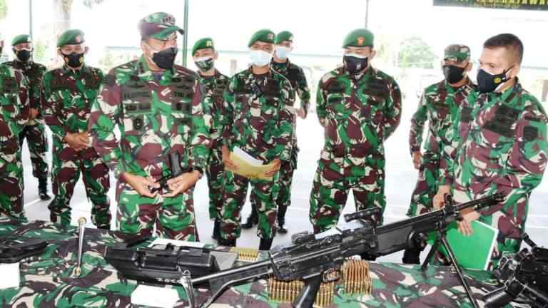 Kunjungan Danrem 023/KS di Mako Yonif 123/RW, Kamis (22/7/2021), untuk mengetahui kesiapan personel, materiil dan logistik pasukan yang akan melaksanakan tugas operasi sebagai Satgas Pengamanan Perbatasan (Pamtas) di wilayah Papua.