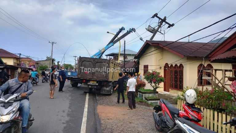 TAPANULIPOST.com – Sebuah tiang listrik tumbang menimpa rumah warga di Jalan Sibolga-Padangsidimpuan, Kelurahan Sibuluan Indah, Kecamatan Pandan, Tapanuli Tengah. Kejadian tersebut membuat aliran listrik ke sejumlah wilayah di Tapteng menjadi terganggu.