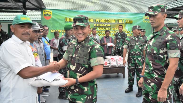 Kasdam I/BB Brigjen TNI Rifky Nawawi didampingi Danrem 023/KS Kolonel Inf Dody Triwinarto, melaksanakan bakti sosial pemberian tali asih kepada abang becak dan masyarakat sekitar Tangkahan Pasar Ikan Modern di Sibolga.