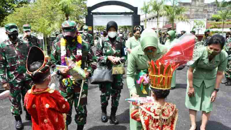 Kedatangan Pangdam disambut oleh Danrem 023/KS Kolonel Inf Febriel Buyung Sikumbang didampingi Ketua Persit KCK Koorcab Rem 023 PD I/BB.
