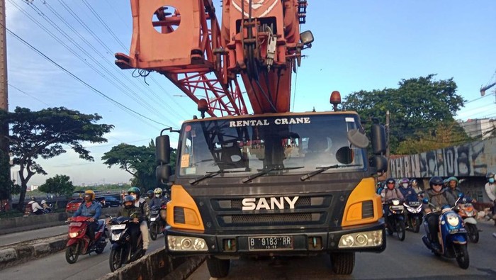TAPANULIPOST.com – Lalu lintas di Jalan Daan Mogot, Jakarta Barat, mengalami kemacetan pada pagi ini, Selasa (7/3/2023). Penyebab kemacetan tersebut adalah mobil alat berat yang mengalami mogok di jalur kanan sebelum Jembatan Gantung.