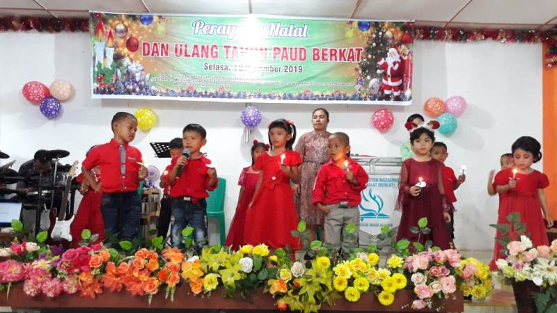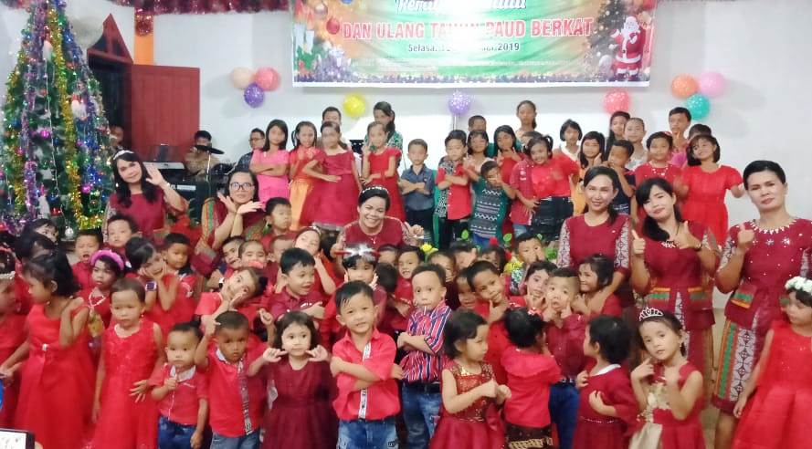 Perayaan Natal bertema: Hidup dengan karakter yang benar (Galatia 5:22). Dan Subthema: Melalui Perayaan Natal dan Ulang Tahun PAUD Berkat, Marilah kita orang tua, pihak sekolah serta masyarakat, menjadi teladan bagi generasi kita.