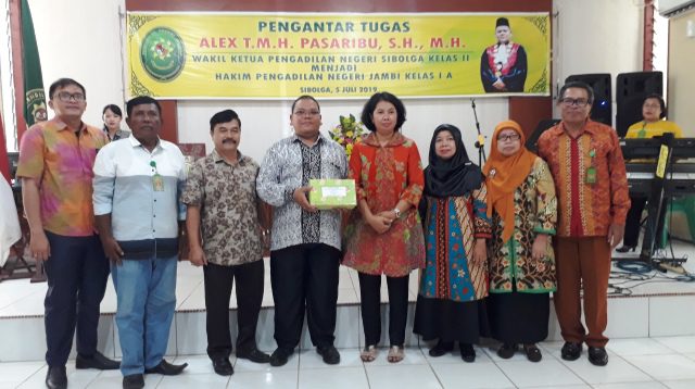 SIBOLGA, TAPANULIPOST.com – Pengadilan Negeri (PN) Sibolga menggelar acara perpisahan Wakil Ketua PN Sibolga, Alex Tahi Mangatur Hamonangan Pasaribu, Jumat, 5 Juli 2019.
