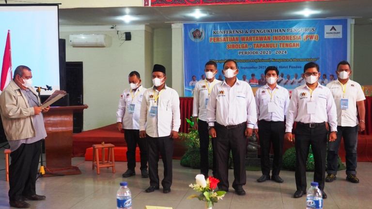 TAPANULIPOST.com – Persatuan Wartawan Indonesia (PWI) Sumut mengukuhkan Kepengurusan PWI Sibolga-Tapanuli Tengah, Sabtu (11/9/2021) di Ball Room PIA Hotel Pandan, Tapteng.