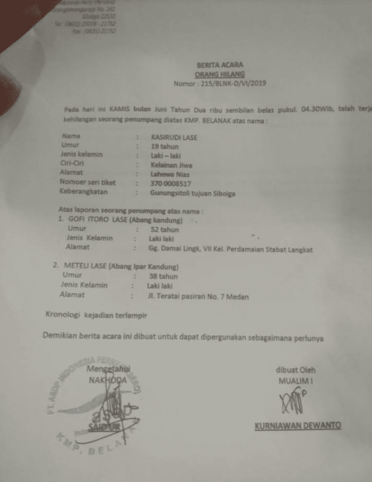 “Saya sangat kecewa karena Kasirudi Lase hilang, tapi tidak dilakukan pencarian,” tegas Jamil.