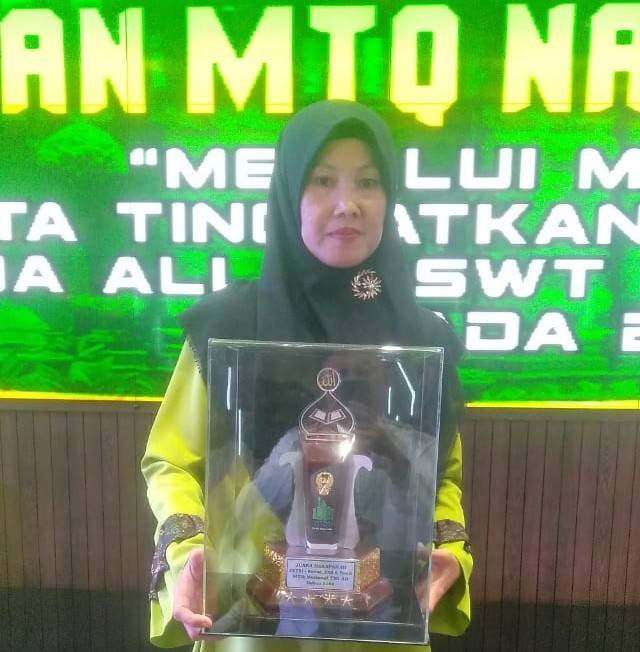 Murni Suliani Tanjung, istri dari Sertu Bustanul Prajurit Korem 023/KS tersebut meraih Juara Harapan III pada lomba MTQ Nasional Angkatan Darat.