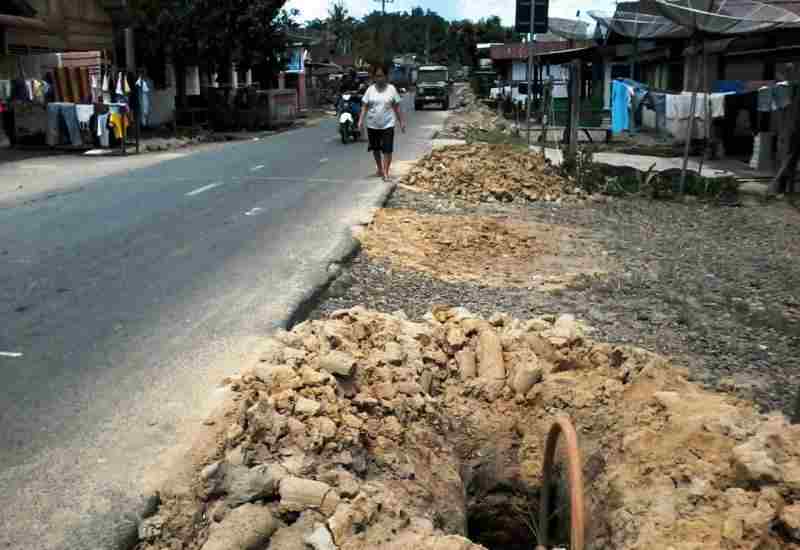 Pantauan awak media Tapanulipost.com di lapangan, Kamis (11/2/2021) di sepanjang jalan Nasional, perbatasan Tapanuli Tengah menuju Kecamatan Batang Toru, banyak lobang galian fiber optik di bahu jalan tanpa rambu-rambu atau pengamanan tali Warning.