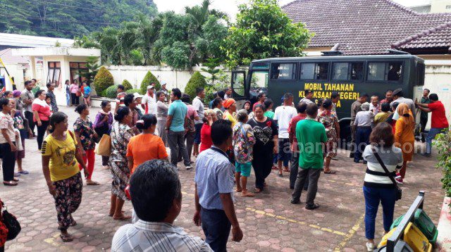 Teriakkan massa pun pecah ketika Bonaran Situmeang turun dari mobil tahanan. “Hidup Bonaran, hidup Bonaran,” teriak massa.
