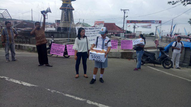 GUNUNGSITOLI, TAPANULIPOST.com – Aliansi Peduli Pendidikan di Kota Gunungsitoli, Sumatera Utara menggelar aksi galang dana seribu koin untuk membantu menebus raport seorang siswi yang ditahan pihak sekolahnya karena tak sanggup bayar uang sumbangan.