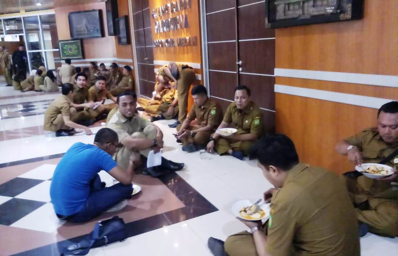 Sarapan bersama digelar setelah apel pagi yang dihadiri ASN, tenaga honor, security, cleaning service dan para tamu yang hadir saat itu.