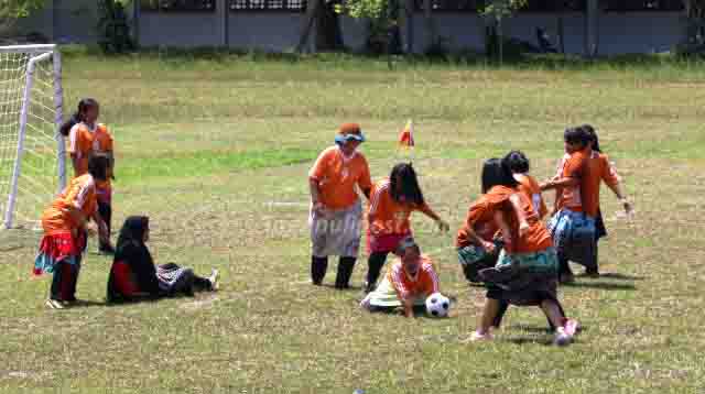Pertandingan itu cukup membuat suasana begitu meriah. Penampilan para pemain yang menggunakan rok itu membuat tertawa seluruh penonton.
