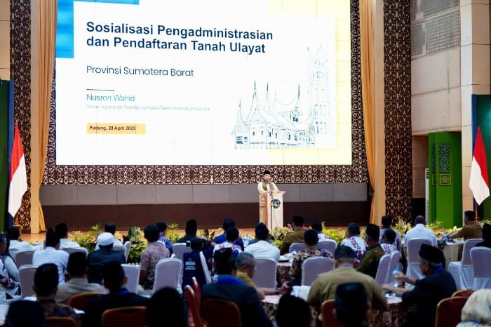 Pernyataan tersebut ia katakan saat membuka kegiatan Sosialisasi Pengadministrasian dan Pendaftaran Tanah Ulayat di Provinsi Sumatera Barat, yang digelar di Auditorium Universitas Negeri Padang, Senin (28/4/2025).