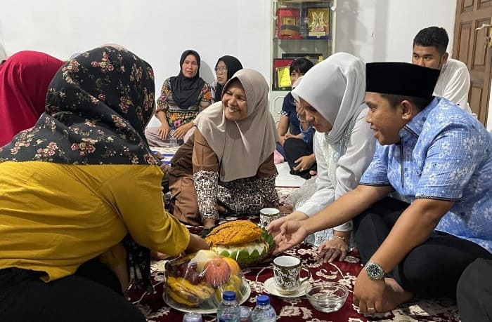 Akhmad Syukri Nazry Penarik dan istrinya dr Rahma Saenah Nasution diupah-upah jiran tetangganya di kediaman pribadi mereka di Jalan Rasak Lingkungan I Kelurahan Pancuran Dewa, Kecamatan Sibolga Sambas, Minggu (22/9/2024) malam.