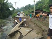 Jalan Barus-Pakkat Amblas Diterjang Arus Sungai