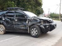 Truk Tapanuli Logistik Tabrak Fortuner di Tikungan Hajoran