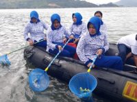 Istri-istri TNI AL Sibolga Bersihkan Sampah Plastik di Laut