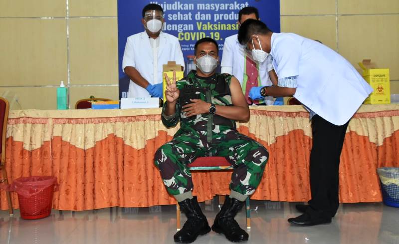“Setelah selesai divaksin tidak ada tanda-tanda perubahan, saya kira ini menjadi harapan dari kita semua, bahwa masyarakat tidak perlu takut akan vaksinasi dan yang paling penting kita juga harus mulai dari sekarang mengikuti program pemerintah,” ujar Danrem.
