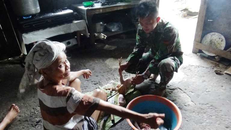 Bukan hanya pembangunan dari program TMMD, kehadiran Personel TNI di desa sasaran juga memberikan kesan yang baik bagi warga desa.